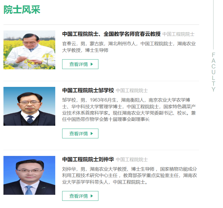 除此之外,湖南农业大学在多个大学排行榜中表现不俗。例如,在软科排行榜中排名全国第172位,在校友会排行榜中排名全国第106位。由此证明湖南农业大学在全国范围内具有较高的认可度和学术影响力。学校是全国首批获得硕士学位授予权单位,拥有博士后科研流动站11个,博士学位授权一级学科12个,硕士学位授权一级学科24个等学术平台,师资力量雄厚拥有中国工程院院士4人,国家级人才48人等其他优秀青年教师。本科专业共79个,其中国家级一流本科专业建设点21个,国家级首批卓越农林人才培养教育试点专业8个。获国家级教学成果奖16项,国家级新农科、新工科、新文科研究与改革实践项目6项,省级教学成果奖135项,湖南农业大学在学科建设上成果斐然。