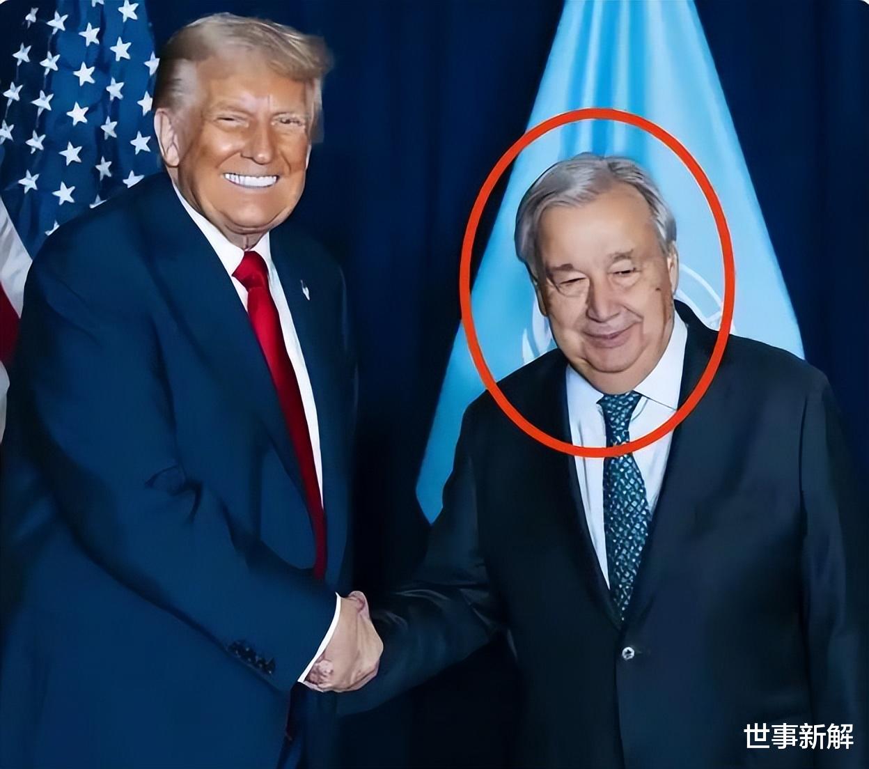 可是令人大跌眼镜的是,他在演讲后与联合国秘书长古特雷斯举行的会晤时满面笑容,反倒是古特雷斯有点不高兴。说的全是恭维的话。他说;我认为联合国的潜力是不可思议的,真的不可思议,他是全世界最有用的组织,在古特雷斯的领导下展开了卓有成效的工作,你做的非常好,真的非常好。反正有的没的说了一大堆好听的话,最后总结,我100%支持联合国。古特雷斯估计没有反应过来,这变脸也太快了,否则应该借他的话直接说,那赶紧把联合国会费交了。