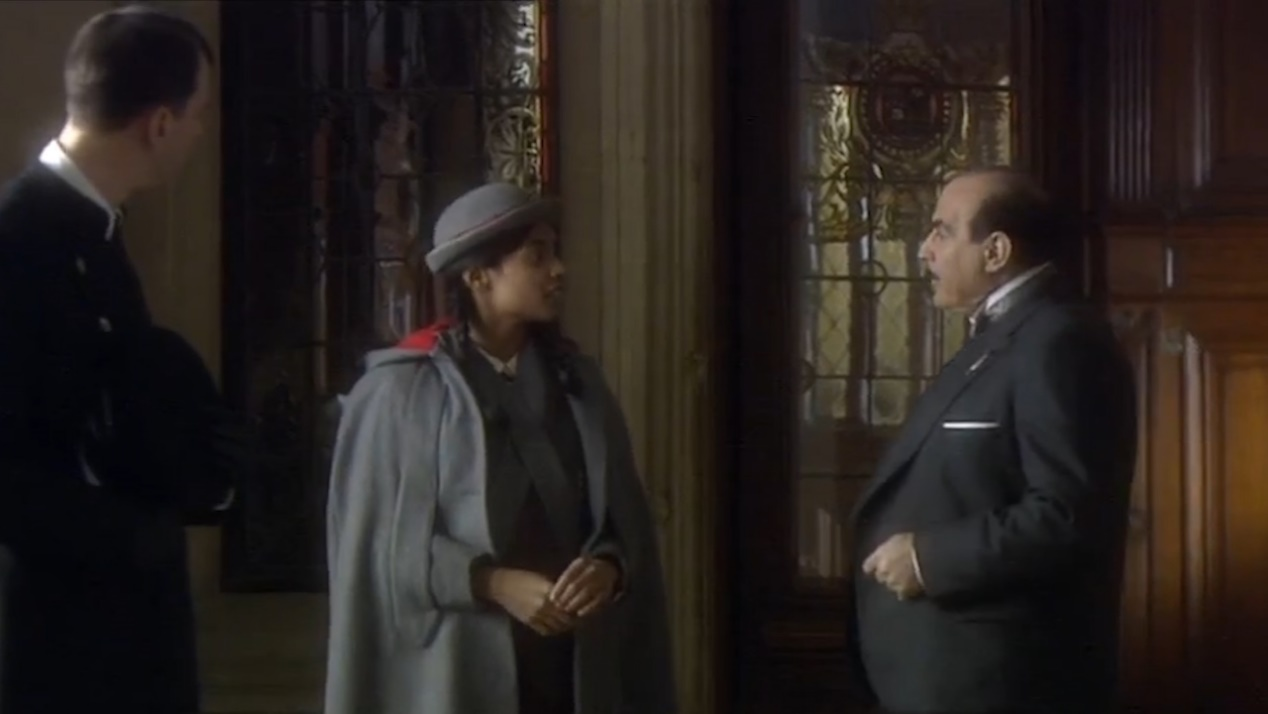 沙普兰听完还在否认,于是波洛决定拿出杀手锏,波洛命人把茱妈带进来。茱妈前几年是英国特务机关的成员,所以她能一眼就认出沙普兰是特工安吉尔。沙普兰也不再掩饰,直接从包里拿出枪,将枪口对准校长,蕾蒂丝先一步走到校长身前,替校长挡下了一枪。趁这空隙的时间,警方立刻将沙普兰控制起来。受伤的还有亚当,原以为沙普兰是他的真爱,却是个毒蝎心肠的女人。