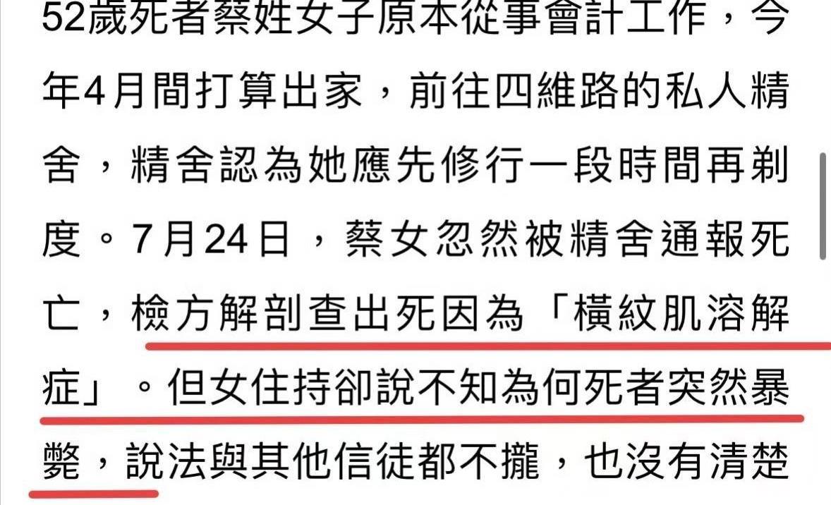 就在蔡某修行的第二个月,她却意外地传出了死讯,