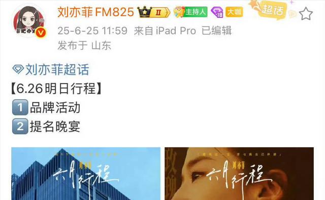 根据刘亦菲25号发布的行程表来看,26号刘亦菲的行程是要去参加LV大秀和白玉兰典礼的。