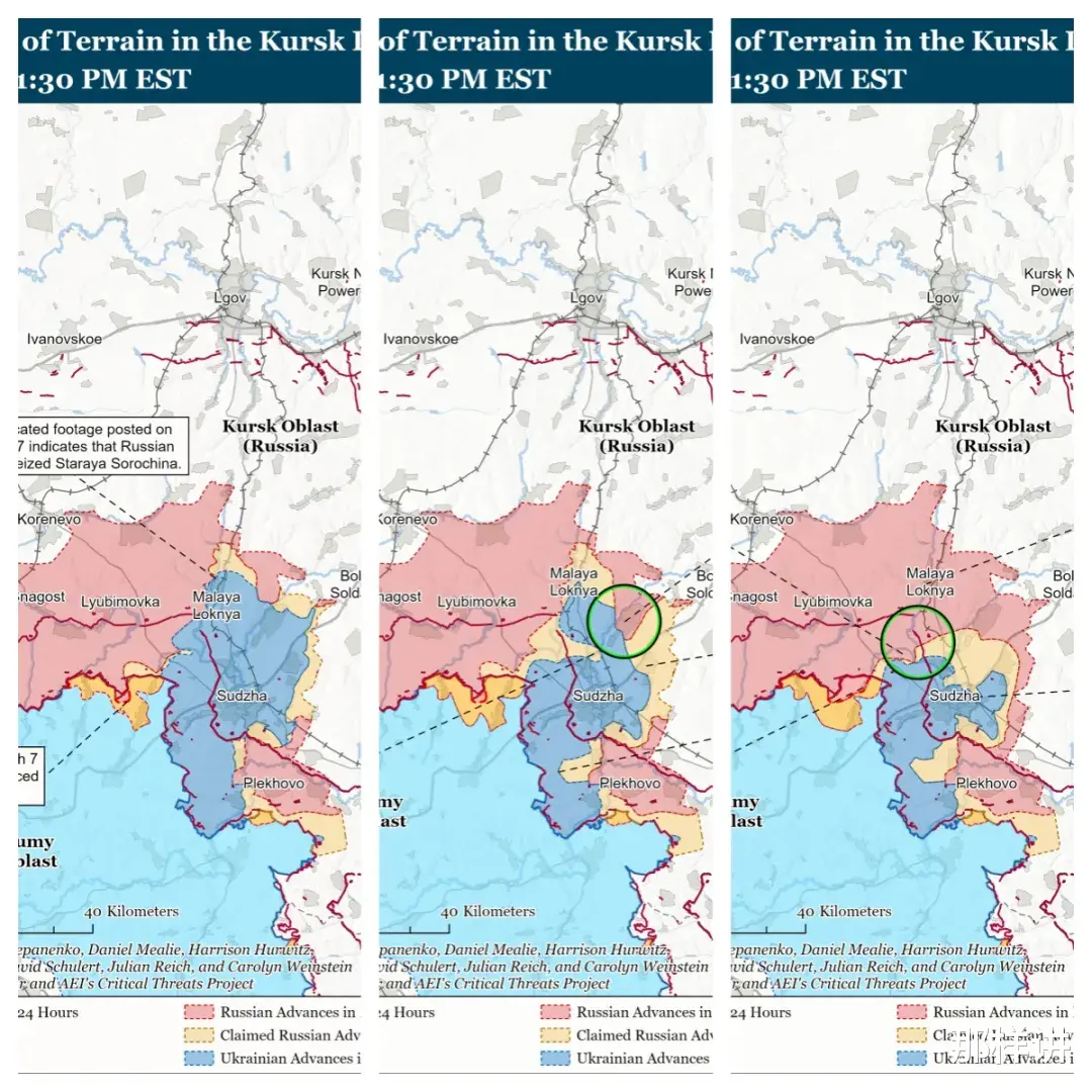 可是,正如同ISW战场形势图所展现的,俄军已取得了丰硕的战果,必将获得了战争上的绝对主动权——乌军在库尔斯克的形势变得万分危急起来。