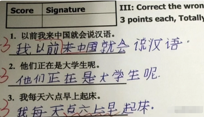 一些外国学生在中文考试中写错的例子也让人感到有趣和无奈。例如,他们把一些句子写得“支离破碎”,或者在表达过程中出现了完全不同的意思。