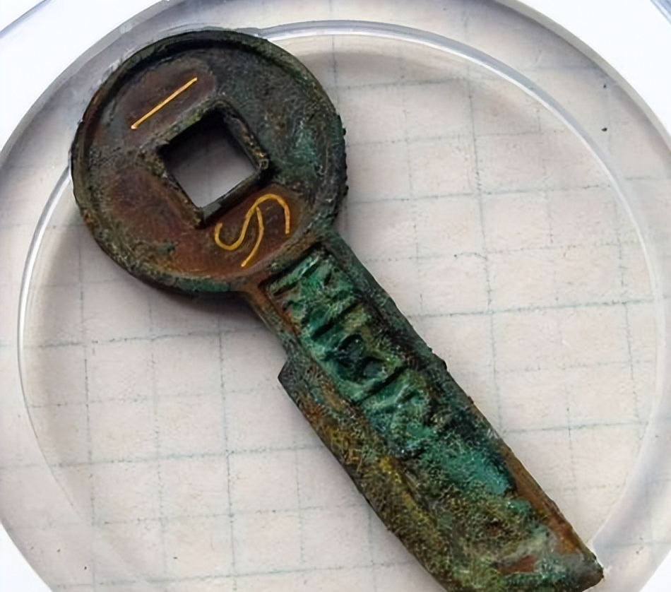 王莽也盯上了这块肥肉,公元7年,朝廷正式推出了大名鼎鼎的”金错刀“。这种钱与契刀类似,只是用错金工艺刻出了“一刀直五千”的文字。