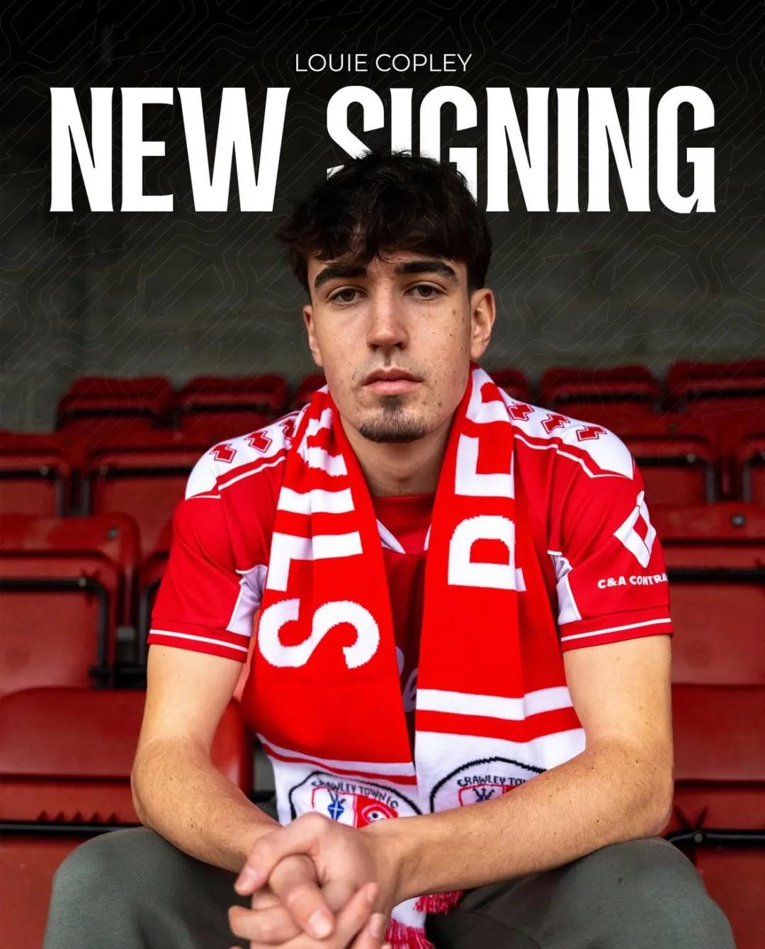官方:路易-科普利租借加盟英乙的克劳利镇直到本赛季结束。