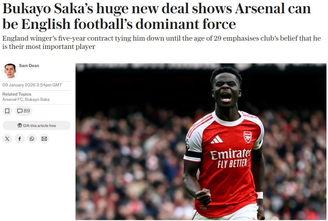 天空体育消息,萨卡已经就一份长期合同和阿森纳达成了协议。萨卡此前的合同2027年到期,天空体育了解到这名边锋的新合同将是2031年到期,并且伴随涨薪。
