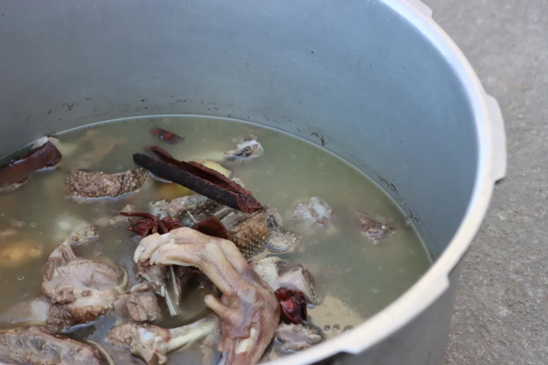 将鹅肉炖煮软烂,期间只需要放入八角桂皮去腥即可。