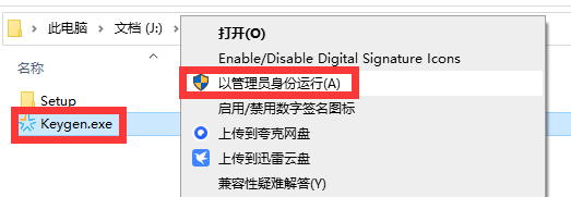 6、回到最开始解压出的文件,找到【Keygen】文件,鼠标右键,点击【以管理员身份运行】。