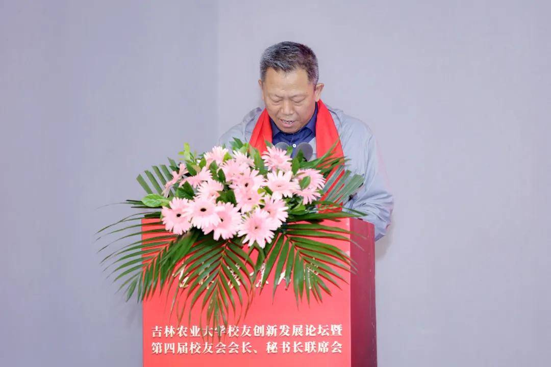 学校校友总会顾问、农资行业校友会筹备组负责人杨靖民作《吉林农业大学农资行业校友会筹备报告》