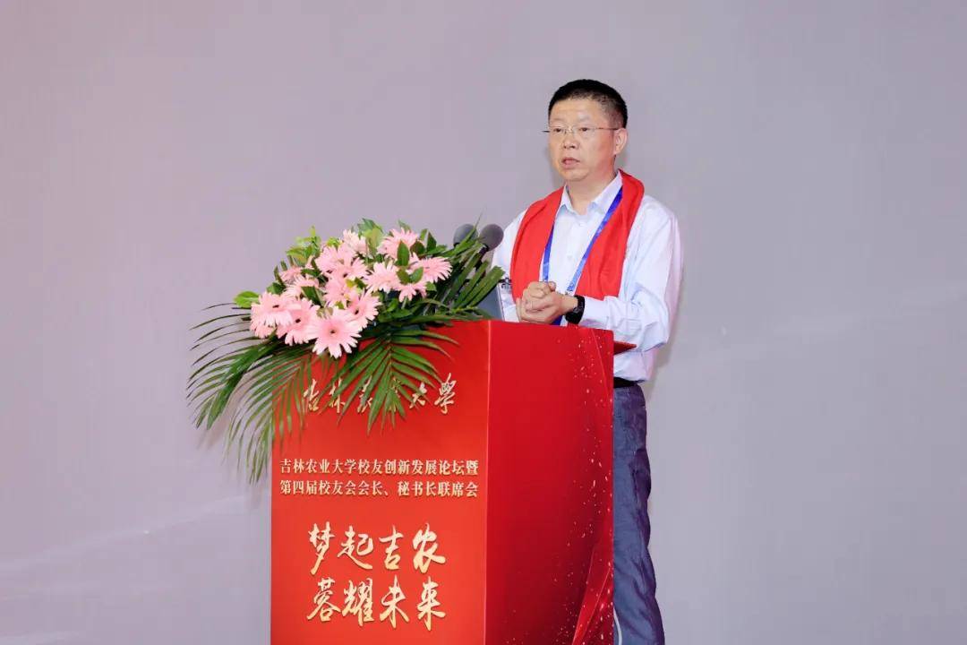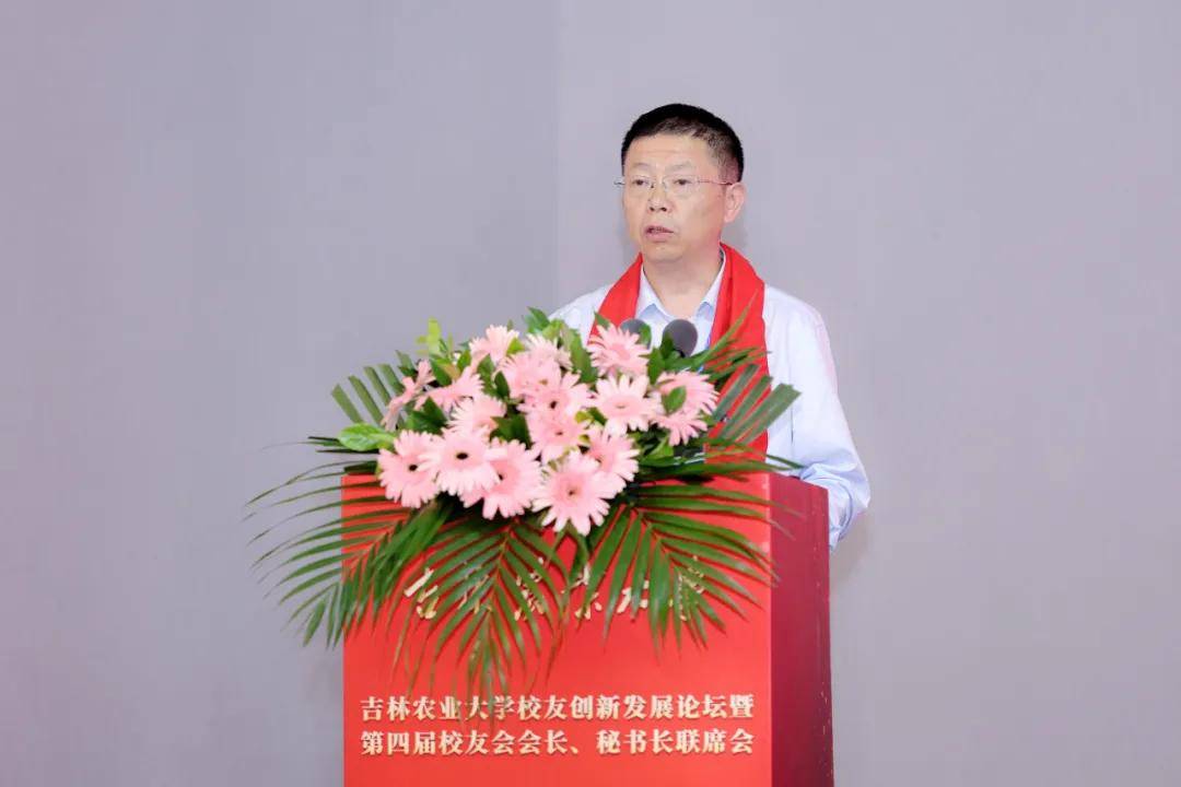 校友创新发展论坛上,李启云代表学校向长期以来心系母校、倾力支持学校事业发展的海内外校友,致以最崇高的敬意!向此次大会的成功举办表示热烈的祝贺!他指出,校友是检验办学质量的“试金石”,是传播社会影响的“扩音器”,更是联结母校与社会、服务国家战略的“桥梁”与“纽带”。校友资源是学校发展的延伸资源,校友力量是推动学校前进的强大引擎。做好校友工作,就是夯实学校发展根基、拓展学校事业版图、传承学校精神文脉。他希望学校校友组织网络更加健全有力,校友与母校的互动更加紧密深入,校友文化传承更加自觉自信,校友互助共享机制更加完善有效。他表示,学校将与广大吉农校友携手并肩,和衷共济,共同书写吉林农业大学与广大校友协同发展、共创未来的动人篇章!