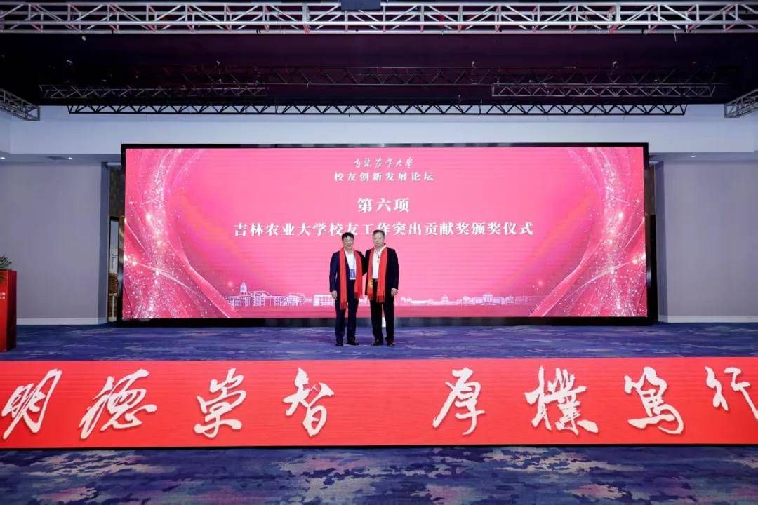 李启云为学校校友总会顾问杨靖民老师颁发吉林农业大学校友工作突出贡献奖
