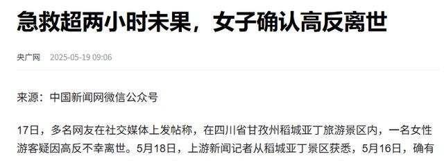 央广网2025-05-19——急救超两小时未果,女子确认高反离世