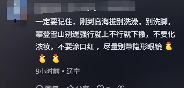 还有网友提醒想要去高海拔的地区,前几天千万不要洗澡,最好不要大面积沾水,千万不要逞强,不舒服就直接下来,要不然很容易出现意外。