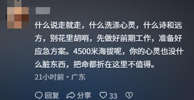 还有网友提醒高海拔地区旅游千万不要搞什么“说走就走”,这一定要做好准备再出发,前期准备还有应急方案,准备好后才不会出现什么大的意外。