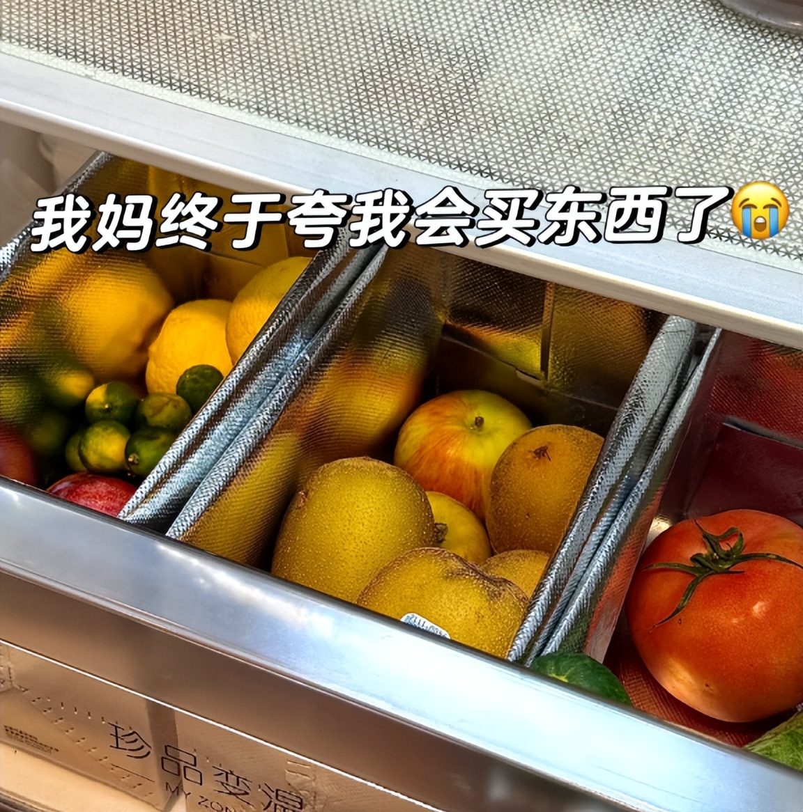 奶茶袋子放进冰箱里面之后,直接把冰箱抽屉区分成了好几个区域,根本不用买收纳篮。