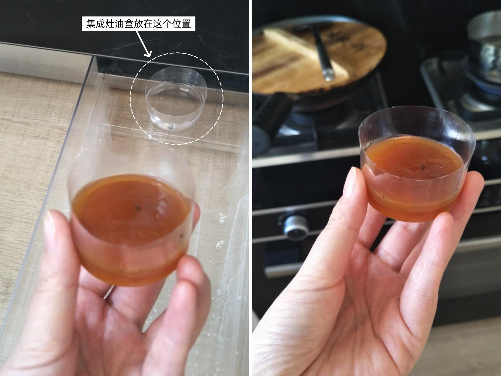这个杯子可以循环使用,家里用的集成灶的话,盒子放在这个位置。