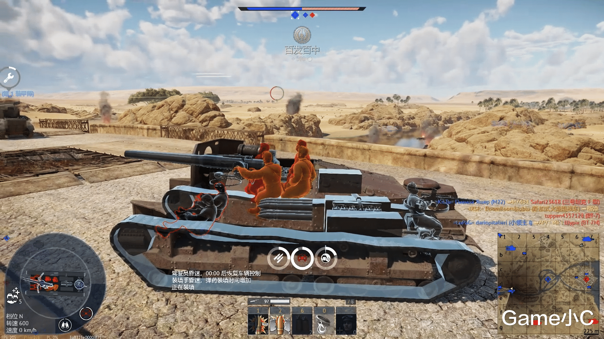防护方面,该车是基于九五式重型坦克底盘改装而成的自行突击炮,车体为轧制均制钢装甲,前部装甲厚度25到30毫米,两侧25到30毫米,后部12到25毫米,顶部13毫米。这样的装甲厚度在游戏中面对低级别的轻武器和炮弹破片有一定的防御能力,但难以抵御中、高级别火力的直接攻击。同时,敞篷的战斗室前部仅12毫米,防护相对薄弱,容易被敌方火力击穿,使车内乘员和设备暴露在危险之中。此外,机枪塔前部14到15毫米,两侧及后部25毫米,顶部11毫米,其装甲分布相对复杂,但整体防护水平也不足以抵御较强的火力打击。