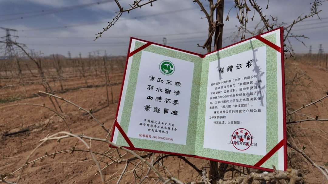 其中,宁夏枸杞种植成为“幸福家园—种下希望树”项目的标志性成果。地处西北干旱区的宁夏,东、西、北三面被沙漠、沙地包围,枸杞林凭借其防风固沙、涵养水源的生态效益,以及劳动密集型产业的特性,为当地创造大量就业机会,推动“绿富同兴”。