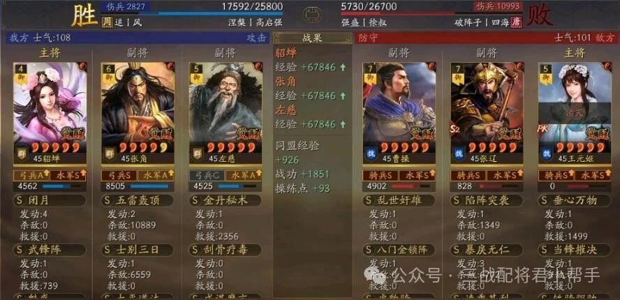 (主将)貂蝉(弓兵宝物),战法搭配:威谋糜亢+刮骨疗毒
