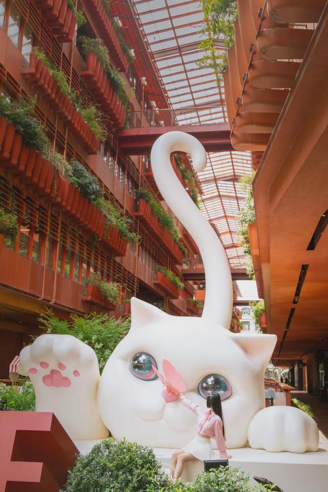 它挥着粉色肉垫与蝴蝶嬉戏玩耍