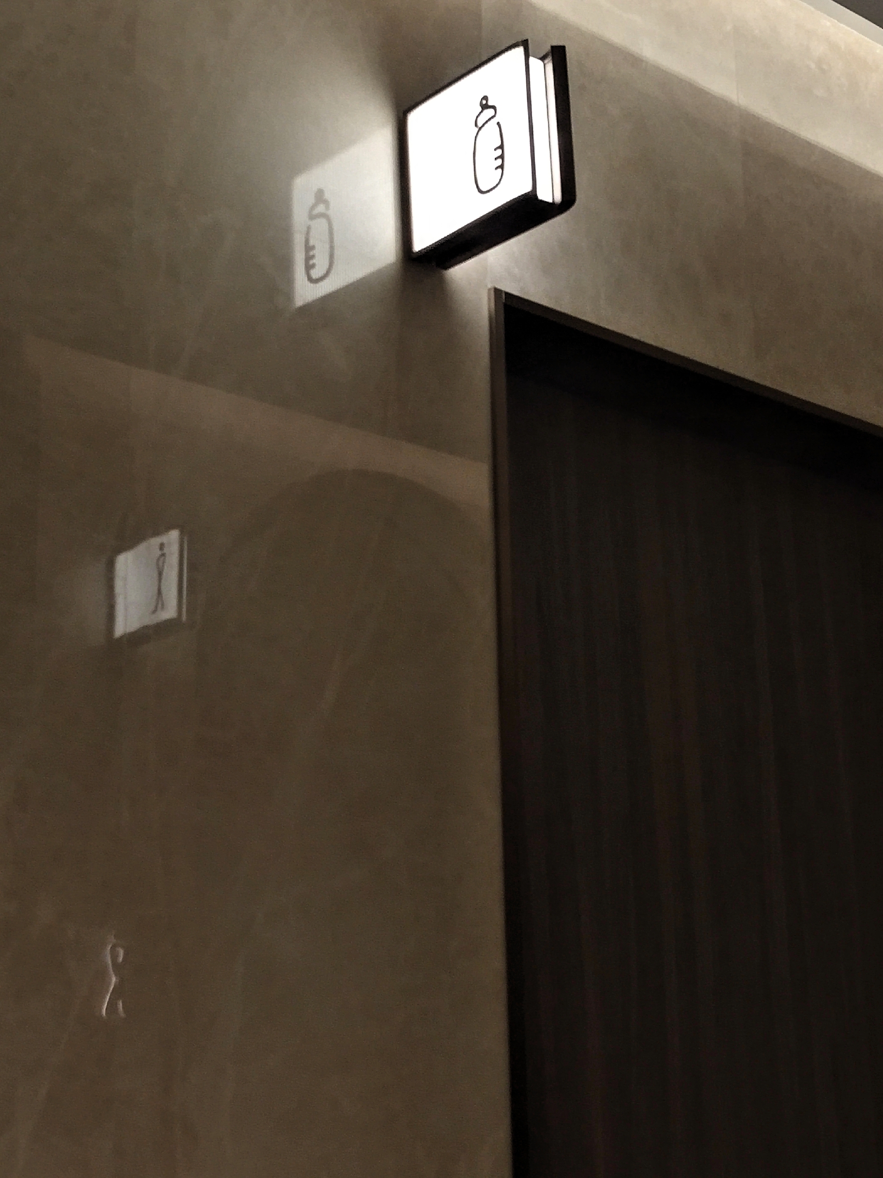 这里的卫生间没有德基的炫酷,但是坐便器都是智能的,门口的标识简单又有一种肉眼可见的高级感。