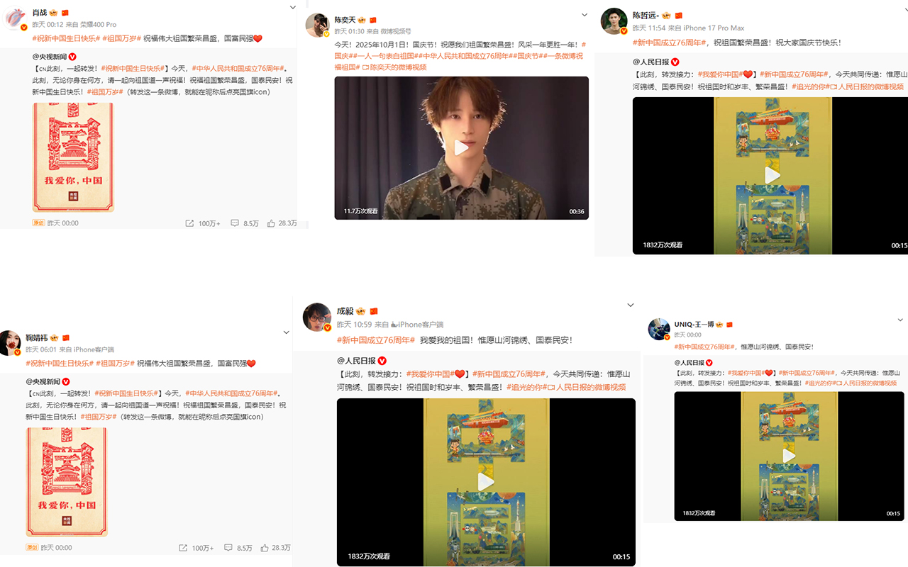 肖战发文:#祝新中国生日快乐# #祖国万岁# 祝福伟大祖国繁荣昌盛,国富民强