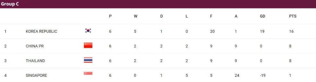 末轮战罢,中泰两队积分同为8分,净胜球同为0球,总进球同为9球,但国足最终凭借面对泰国的一胜一平,以最极限的方式,进入了世预赛的下一阶段。
