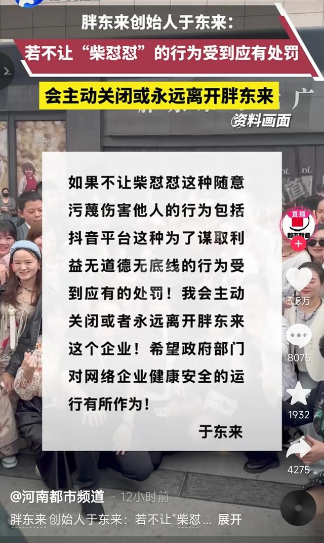 更狠的是,胖东来连夜删除所有抖音视频,发文控诉平台“环境肮脏”,甚至扬言“不解决就关店”,呼吁政府介入。