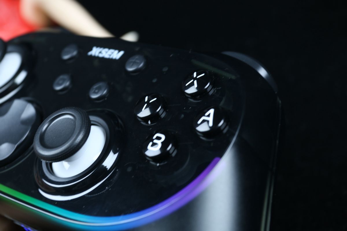 透过西圣GC1游戏手柄机身半透明的外壳,能清晰看到内部精密机芯与电路板,搭配 多 种可自定义的灯光效果,在激战时刻伴随音效和RBG灯光的闪烁,无论是赛车漂移还是格斗瞬间游戏、第一人称视角都拉满游戏氛围感。外壳还具备抗指纹涂层,长期使用依旧清爽。