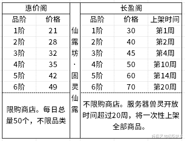 有两仙露商店,一个限购,一个不限购。价格如图: