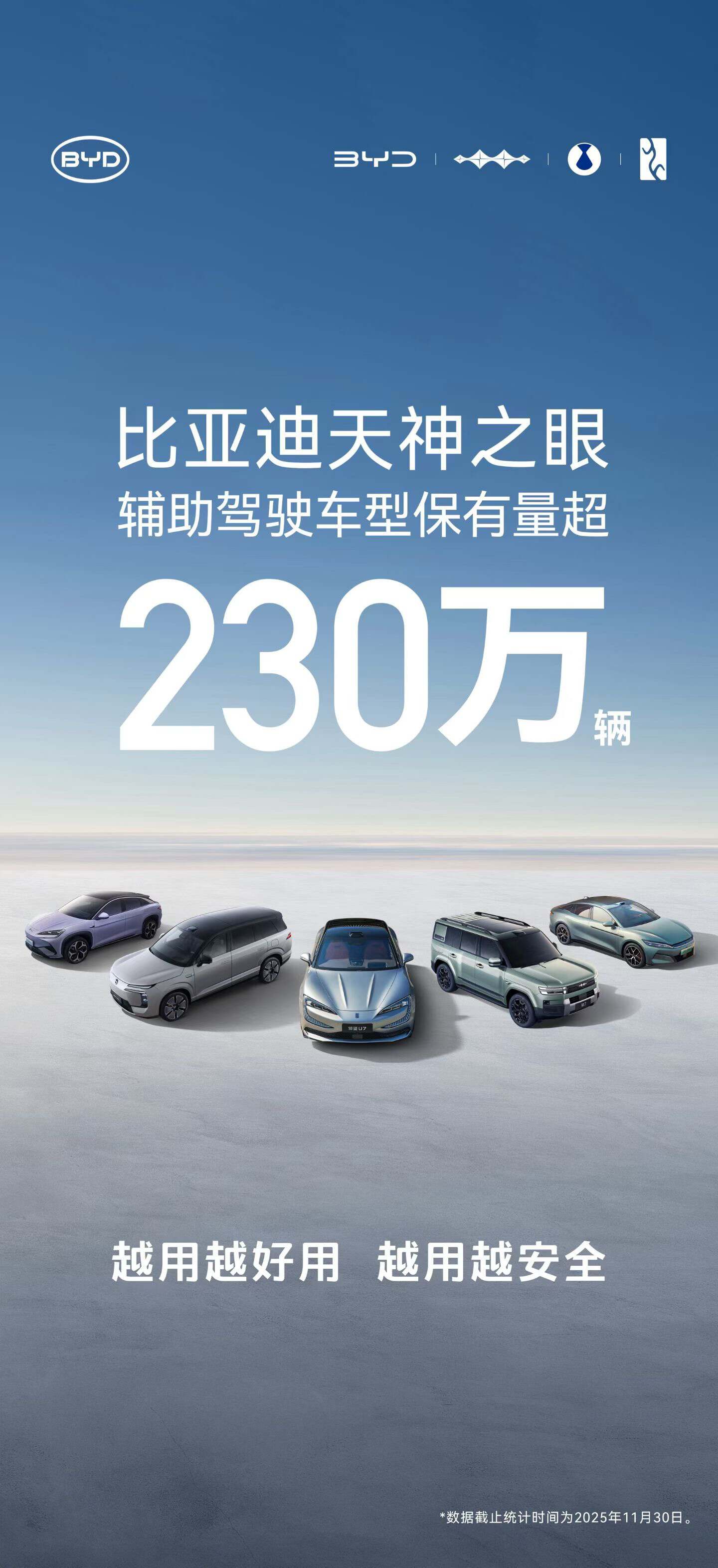 下半年多次OTA更新,持续优化主动安全、行车功能与座舱体验,践行“好技术,人人可享”。天神之眼凭借稳定表现与全面保障,赢得消费者信赖,成为比亚迪车型热销的关键因素。智能辅助驾驶,正从亮点配置转变为购车核心考量,比亚迪天神之眼,定义辅助驾驶新标杆,开启全民智驾新时代!