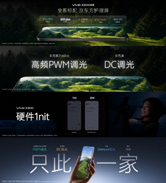 今天,数码圈期待已久的vivo X300系列终于正式开售!这次新机直接祭出「蓝科技」全家桶,从屏幕到续航全都安排得明明白白。全系标配的京东方护眼屏不仅搭载8T LTPO技术,还支持2160Hz高频PWM调光和全亮度DC调光,深夜刷手机再也不怕辣眼睛。更让人惊喜的是硬件1nit极暗屏和双Demura优化,暗光环境下观看体验直接拉满。搭配那块6040mAh蓝海电池和90W有线+40W无线闪充组合,续航焦虑?这次真的不存在了!