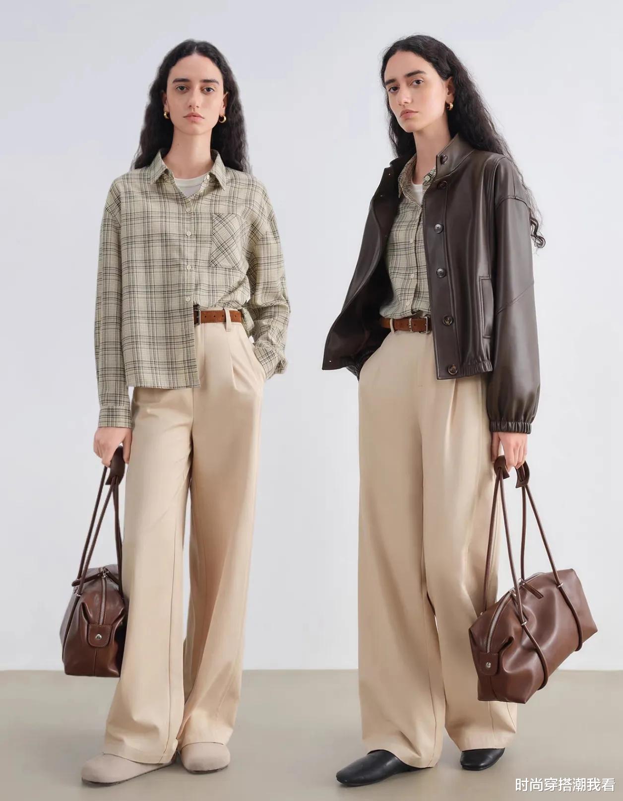 除了牛仔裤和工装裤,格子衬衫和阔腿裤搭配起来也别有一番风味。阔腿裤的宽松版型能够很好地修饰腿型,让你的双腿看起来更加修长。搭配上一件颜色素雅的格子衬衫,比如灰白格子或者浅粉格子,整体造型优雅又时尚。