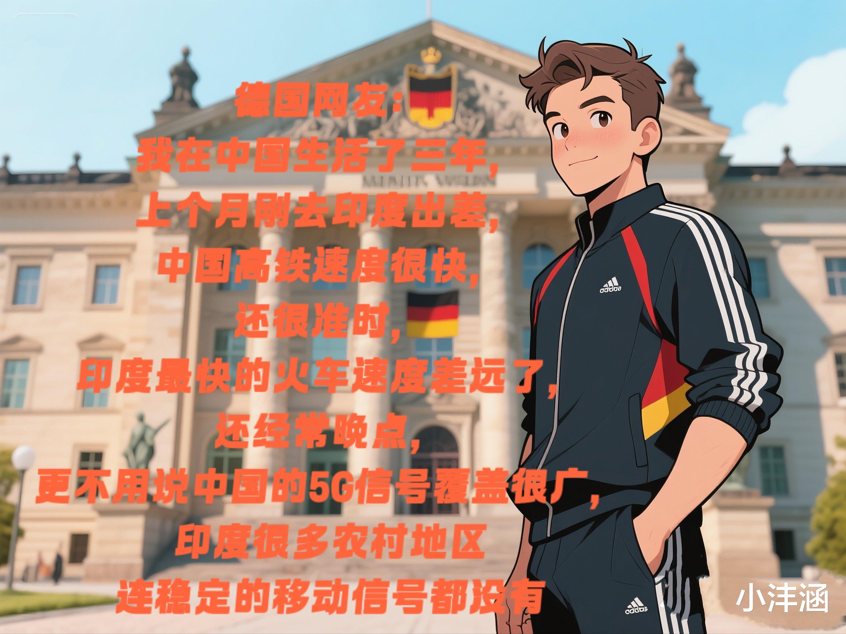 德意志网友接着补充说:“我在中国生活了三年,上个月刚去印度出差,中国高铁速度很快,还很准时,印度最快的火车速度差远了,还经常晚点,更不用说中国的5G信号覆盖很广,印度很多农村地区连稳定的移动信号都没有,