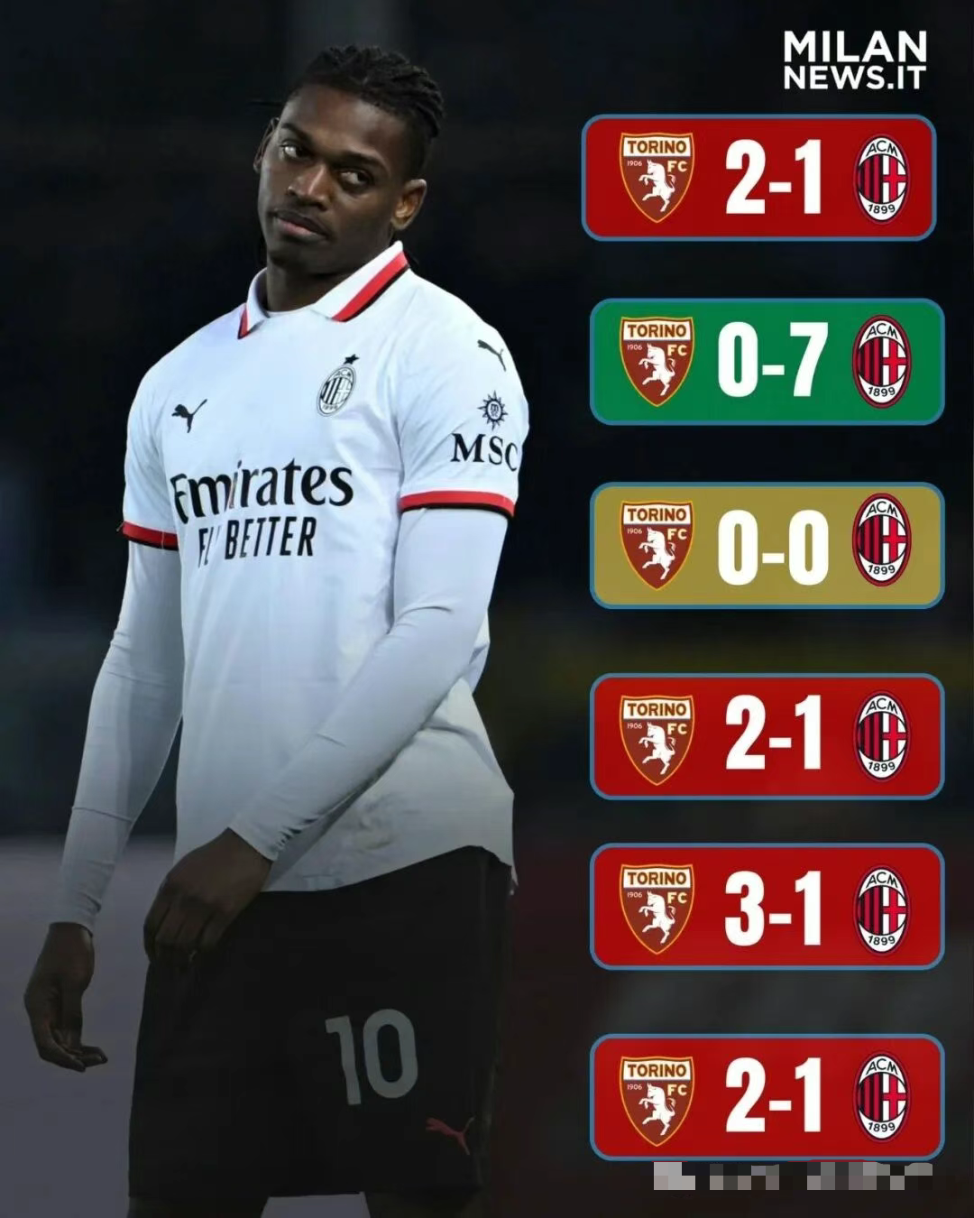 2013/14赛季至今,米兰联赛客场对阵都灵的战绩是1胜6平5负,唯一一胜是7球大胜,但掩盖不了整体颓势。