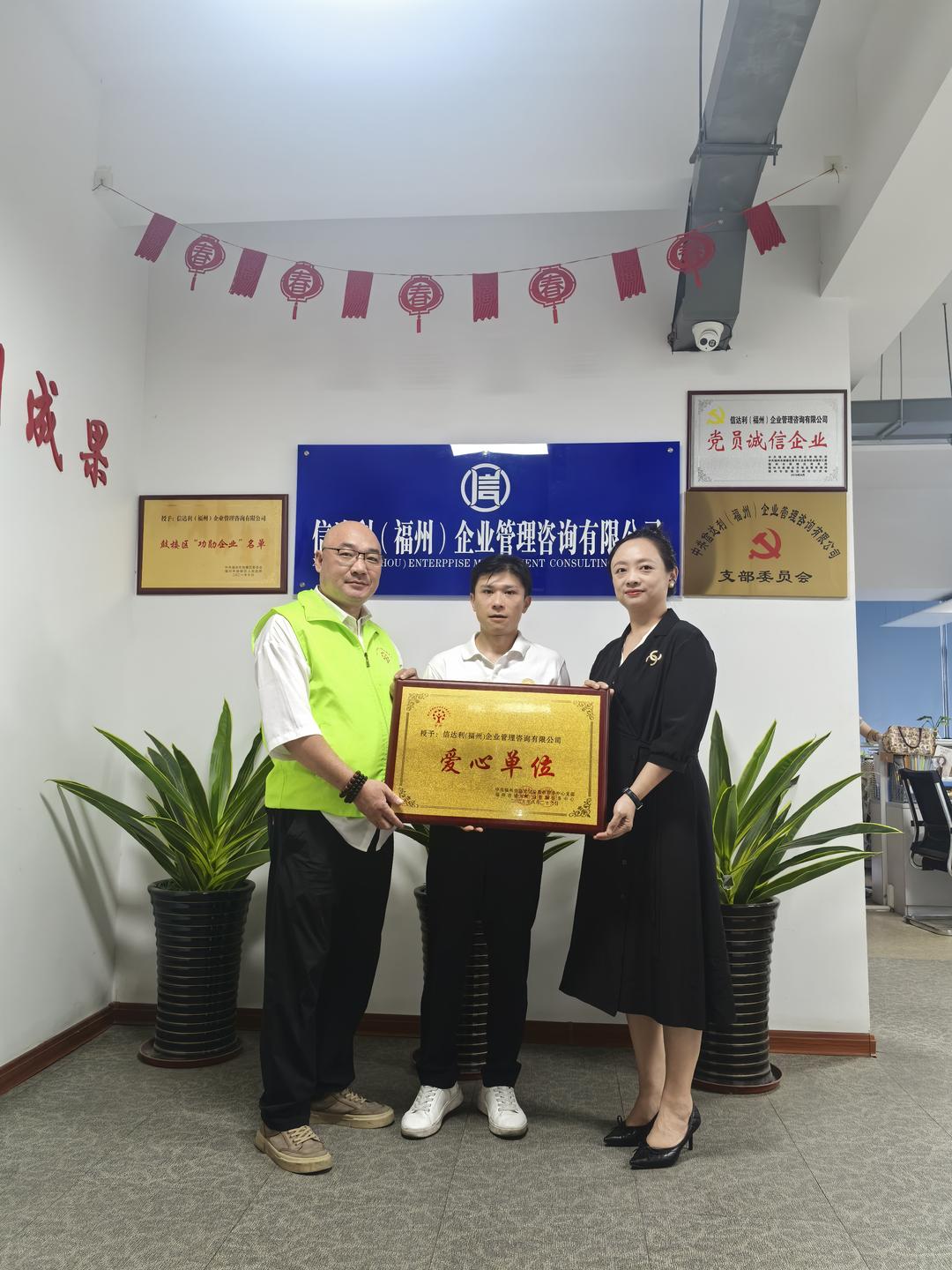 信达利(福州)企业管理咨询有限公司此次荣获“爱心单位”称号,不仅是一份荣誉,更是一份责任。相信在叶聪董事长的带领下,企业将以此次授牌为契机,在公益道路上持续前行,用实际行动书写企业担当,为推动社会公益事业发展贡献更多力量,让爱心之花在榕城大地上绚丽绽放。