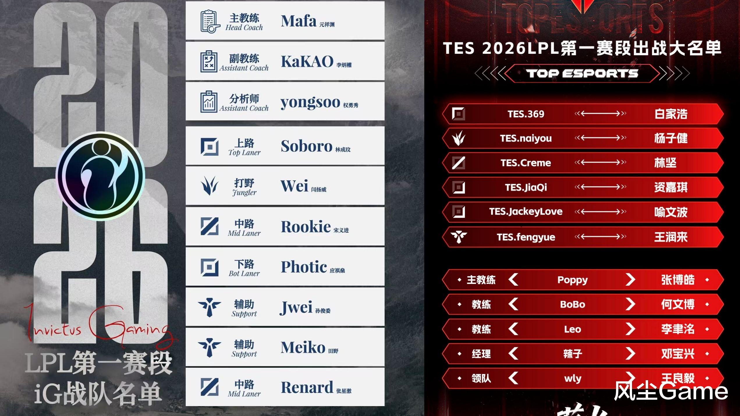 LPL新赛季第一赛段,再有2天就正式开赛了,打揭幕战的四支队伍,已经陆续官宣大名单了,IG阵容跟之前网传的一样,Rookie回归顶替Renard,这位德杯还算亮眼的小将,还真只是打一打德杯,不过IG新赛季大名单里,Renard也是在的,如果Rookie状态拉胯的话,他还有机会打首发。