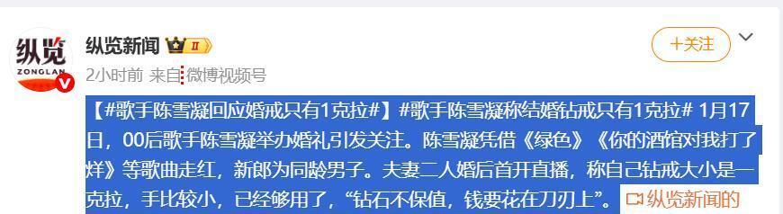 1月中旬,在山西临汾那场热热闹闹的婚礼现场,大家目光刚从豪华布置和陈雪凝3米长的珍珠婚纱挪开,就被她和老公的婚戒尺寸“刷屏”了。她改编自己的经典歌《你的酒馆对我打了烊》变成“为你永打烊”,场地伴手礼上还写着“从绿色走到红色”,一股“爷青结”的情怀杀直击全网。但让人没想到的是,这场热搜里的真正“主角”不是谁嫁了、谁哭了,而是陈雪凝手上的一克拉钻戒。