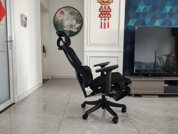 夏草木 Fit2 人体工学椅采用第六代重力联动底盘,在久坐舒适体验方面的又一重要设计。它将新颖的机械传导技术融合进富有肌肉感的安全底盘中,能够根据使用者的体重自动调节后仰反馈力度。对于体重较轻的人来说,使用这把椅子时,只需轻轻一靠,就能轻松实现后仰,享受舒适的休息姿势;而对于体重较重的人,起身时也不会感觉到吃力,底盘能够提供恰到好处的助力,让起身变得更加轻松。这种智能调节的设计,使得不同体重的人都能在这把椅子上找到最舒适的坐姿,大大提升了椅子的通用性和舒适性。而且,底盘的后仰角度非常大,最大可达 145°,配合隐藏式可伸缩腿托,让你在午休或放松时能够尽情舒展身体,享受惬意的时光。