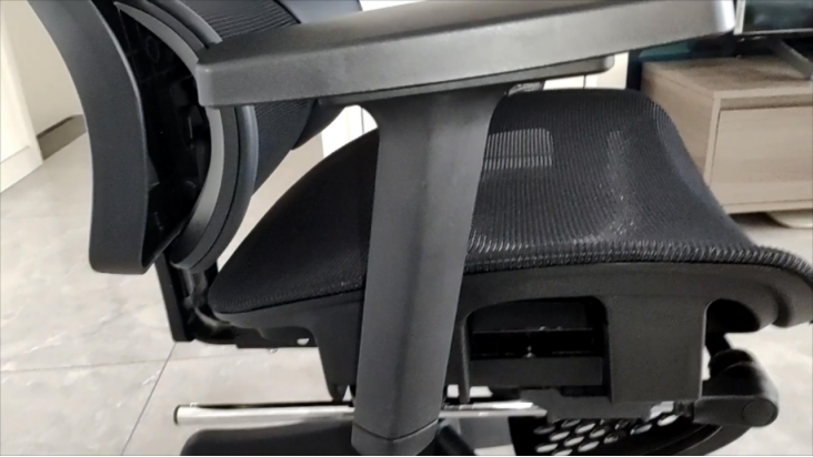 夏草木 Fit2 人体工学椅的椅垫为采用了一体成型的设计,厚度达到了10厘米,同样使用全网面材质,让座椅夏天可以进行透气,并且久坐也不变形,也使座椅对臀部有所支撑,椅垫边角均为圆弧形,并且两侧也上翘的包裹,让坐感更加舒适,与其它产品相比整体座椅完全看不到褶皱。并且在底部增加了可以伸缩的折叠脚托。