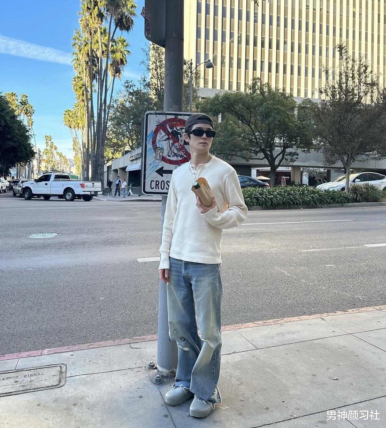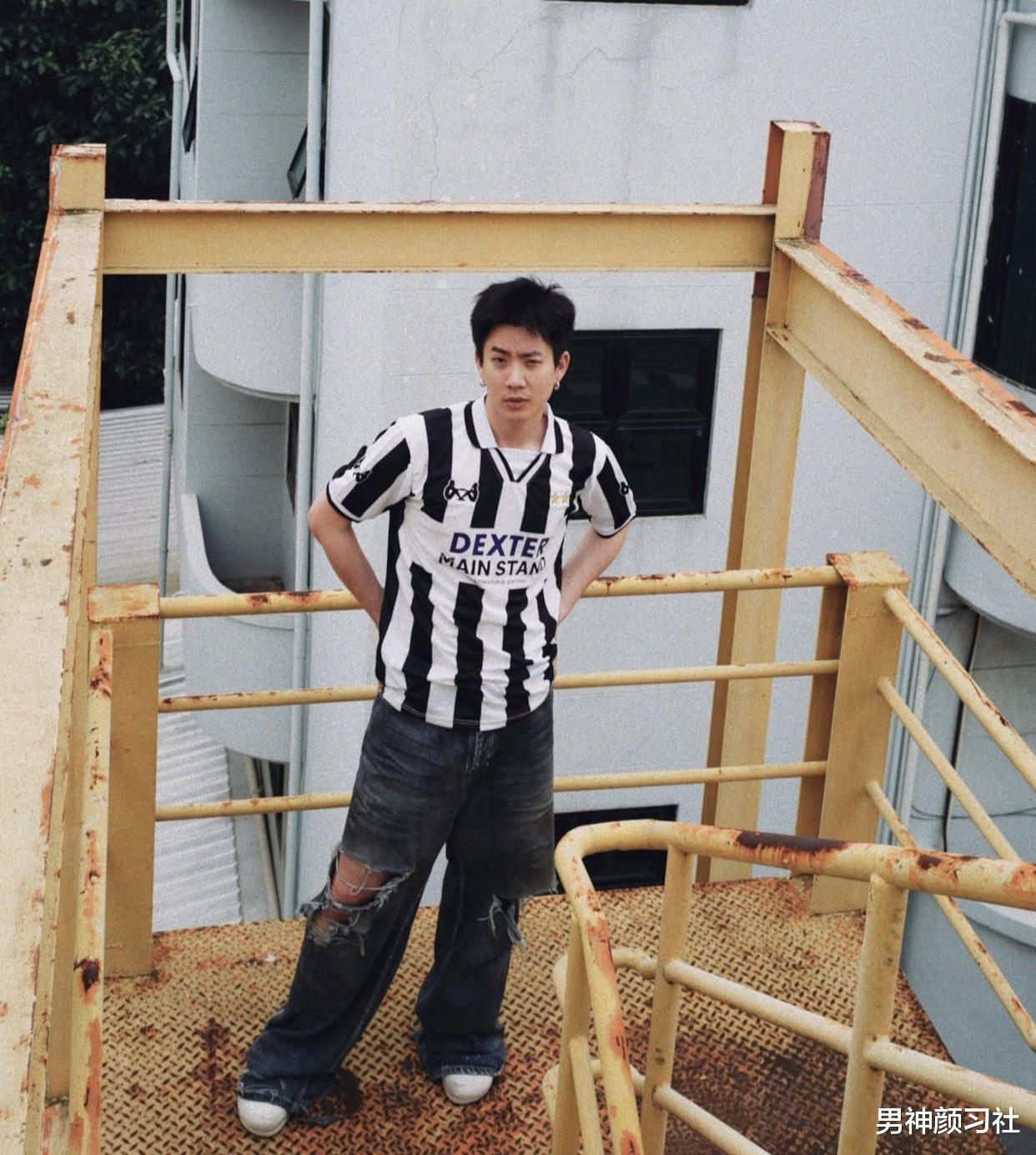 很多男生在夏天喜欢穿球衣,想要你的球衣look显得有辨识度,可以看看他的选择。这样搭配破洞牛仔裤,会让你的穿搭水平提高不止一个level,哪怕都是宽松搭宽松,因为破洞牛仔裤特别有看点,所以视觉上会往下。