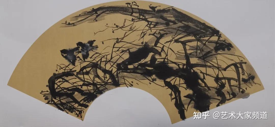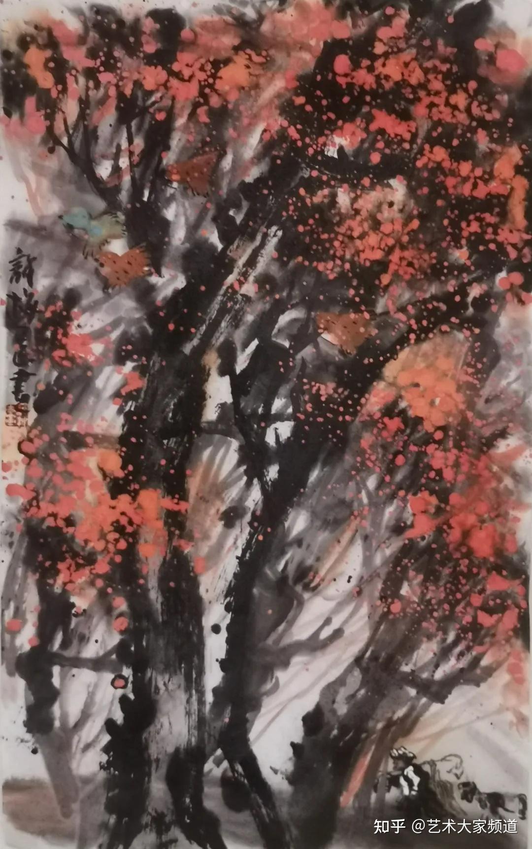 在表现形式上,她也展现出了兼容并蓄的探索精神。在表现秋日景象的作品中,她敢于运用大面积鲜艳的红色与橙色,与浓黑的枝干形成强烈对比,构图饱满,具有鲜明的视觉感染力与装饰趣味。而在扇形制式的画面中,她则能巧妙依据扇面的弧形进行构图,使梅枝的穿插、山水的布局随形就势,别具巧思。这些尝试,使其艺术在保有传统内核的同时,亦焕发出贴合当代审美的清新气息。