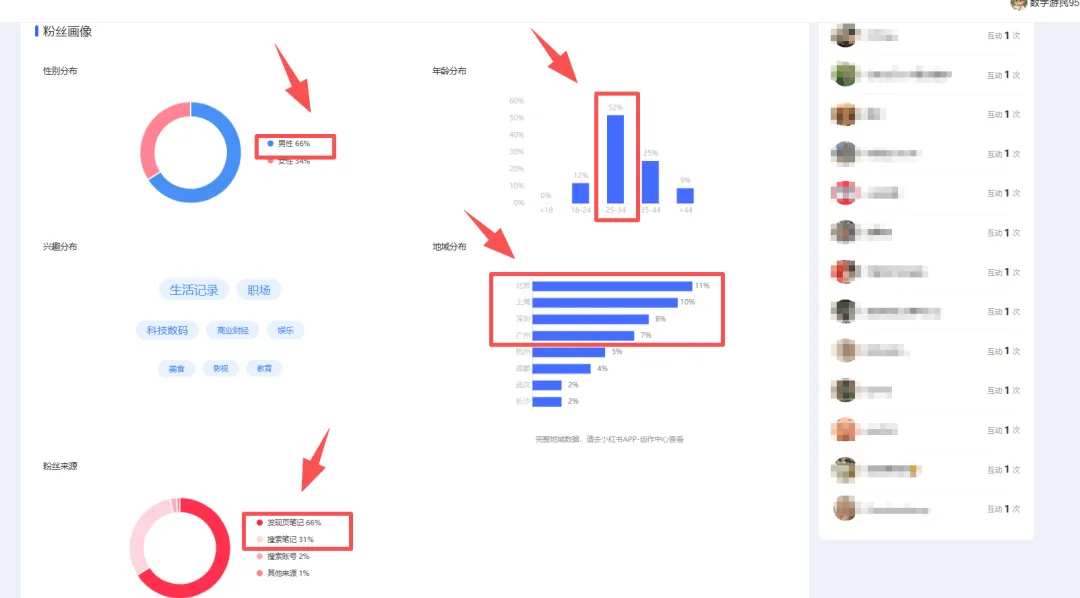 地域分布小红书的呈现形式是具体城市,北上深广分别占比11%、10%、8%、7%。推荐笔记流量带来的关注占比66%,搜索笔记流量带来的关注占比31%,比较出乎意料的是有2%的用户(14个人)是直接搜索账号的名称「数字游民9527」关注的。很好奇这14个大佬是不是群里的小伙伴啊?知乎数据