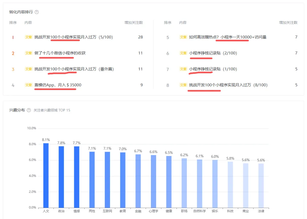 目前排名最高的8条内容,都是和小程序相关的分享。不知道是不是10月之后很少发布小程序相关的内容了,所以知乎也没的什么新增流量?