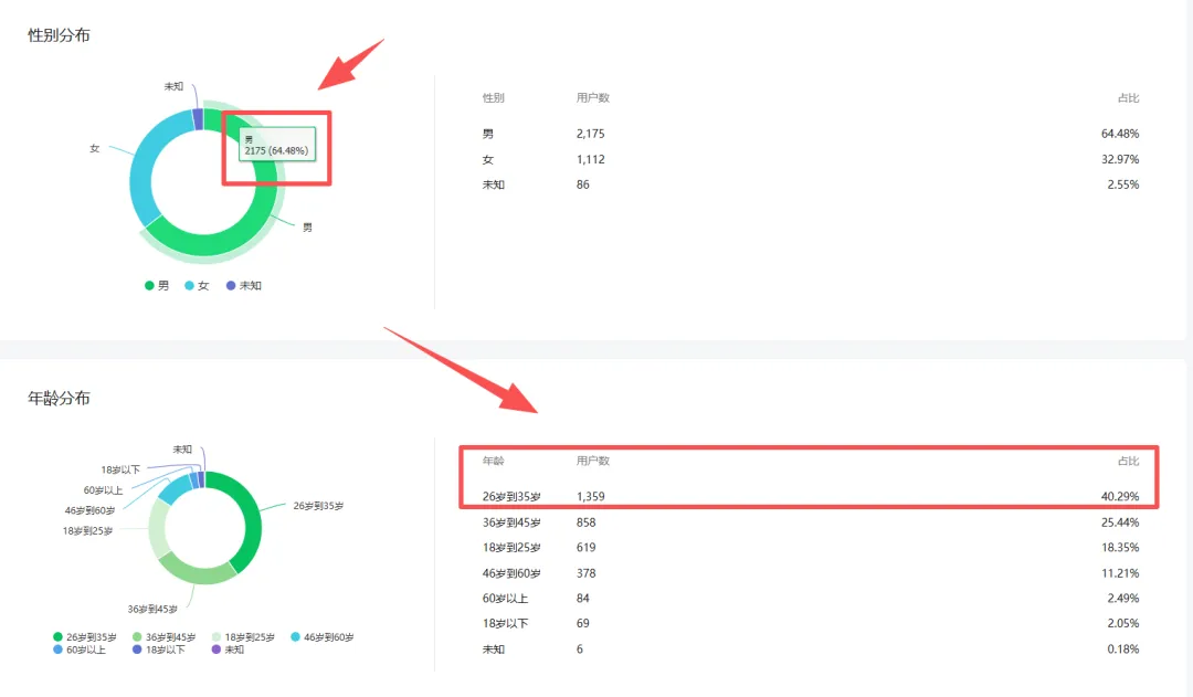 平均阅读量在200左右,公众号消息占比约一半,搜索流量占比22%,推荐流量1.6%(估计还是我花了50块钱测试的付费加热流量)。搜索流量相比半年之前有明显下滑,之前的搜索流量估计能在一半以上,高峰时期甚至在8成左右,主要原因是最近半年SEO方向的内容少了很多。用户属性方面男性用户占比6成多,女性用户占比3成多。年龄集中在26岁到45岁,占比65%。但是我很好奇60岁以上的大爷大妈占比的那2.5%是怎么个事儿,之前我究竟发了什么内容啊?