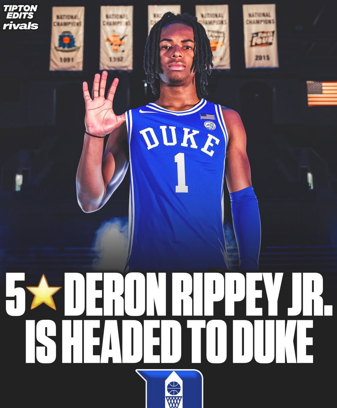 2026届五星控卫小德隆-里皮(Deron Rippey Jr)宣布了对杜克大学的承诺,让蓝魔成为这届招生第一的球队。