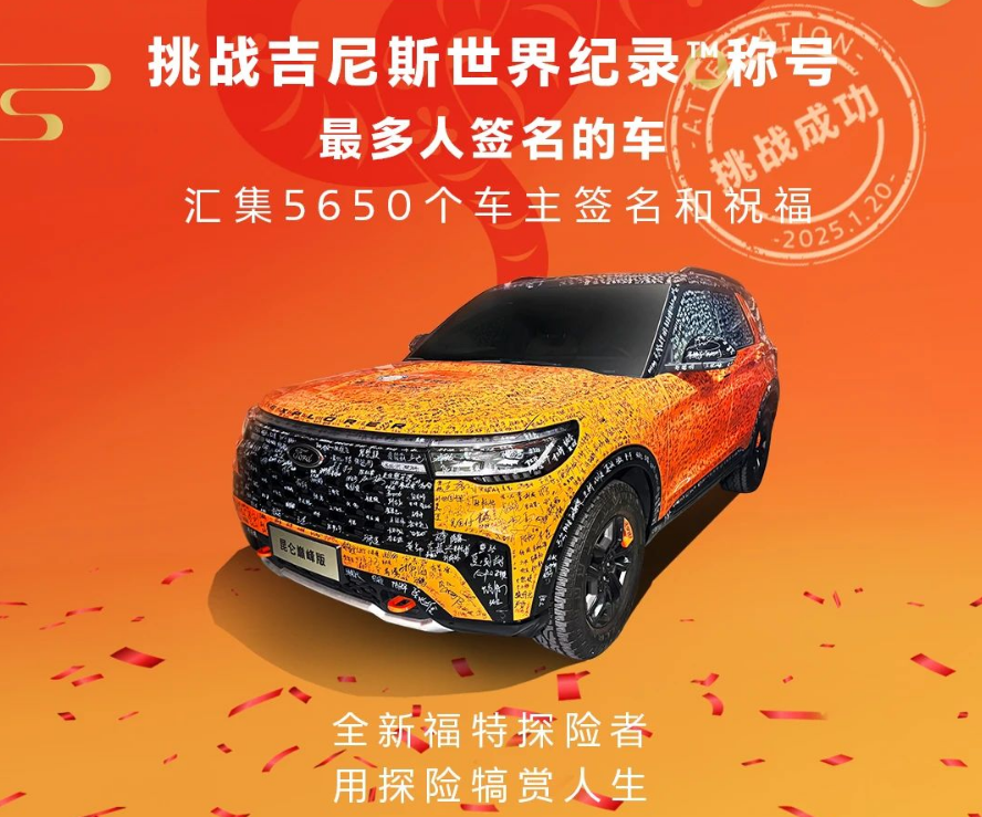 要说哪个车友圈能创造历史,今天必须给探险者车主记上一笔。一听说探险者要挑战“最多车主签名的车”这个吉尼斯世界纪录,纷纷都来助力,深圳的车友们、北京的车友们、全国各地的车友们都来帮忙,轻轻松松凑齐5650个车主签名和祝福!