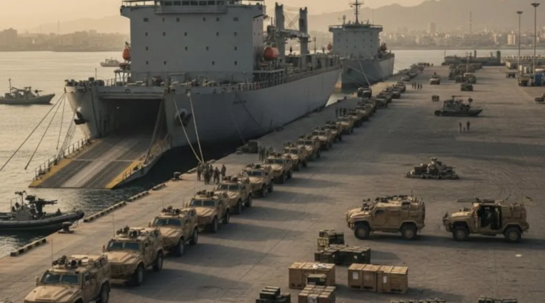 两艘来自阿联酋的运输船停靠在也门东部的 穆卡拉港船上装载了 80 多辆军用车辆与大量武器弹药随后,这些装备被转运至赖扬空军基地随后,沙特空军直接出手——