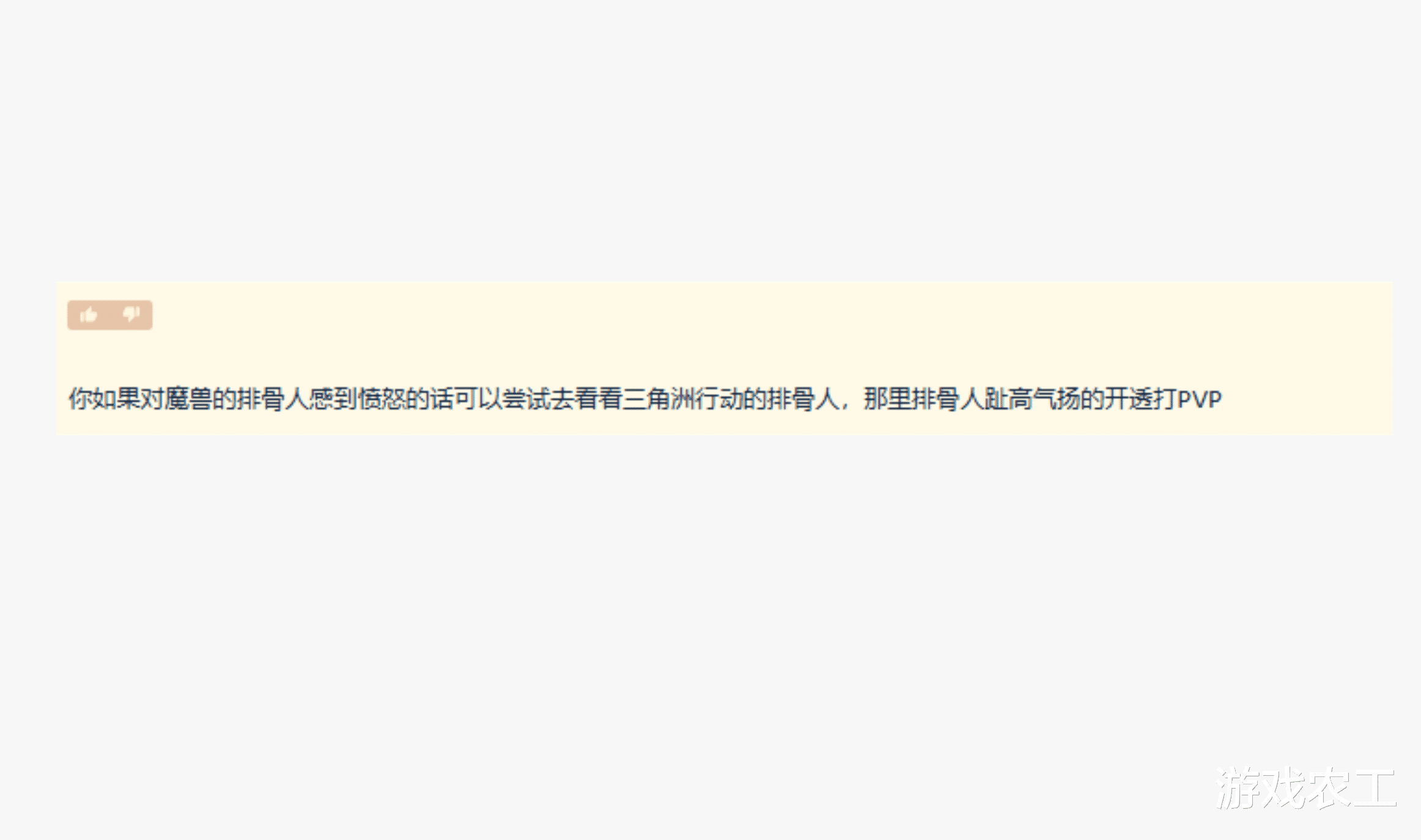也有人在评论区表示:你如果对魔兽的排骨人感到愤怒的话可以尝试去看看三角洲行动的排骨人,那里排骨人趾高气扬地开透视打PVP。虽然但是作者想说的是,不能因为反对魔兽世界的排骨人,就一定要去看看别的游戏中排骨人更加猖狂的景象,毕竟大家都希望游戏更加好一点,而不是希望游戏在比烂,毕竟比烂多简单,只要不是垫底即可,那魔兽世界还更新什么,摆烂就好了。