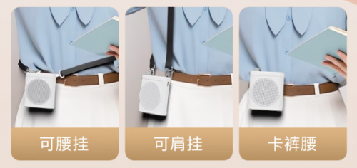 二是佩戴与使用方式,主要分为领夹式、手持式和头戴式三类。领夹式是最主流的款式,麦克风可别在衣领上,主机挂腰或斜挎,轻便不影响活动;手持式操作简单,音量调节直观,适合短时间演讲或临时喊话,但长时间使用会占用双手;头戴式则通过头带固定麦克风,拾音更稳定,不过在课堂等场景容易分散听众注意力。